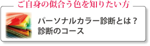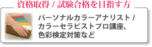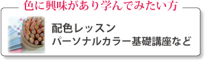 パーソナルカラー診断、カラーアナリストプロ養成講座、カラーセラピストプロ養成講座、色彩検定対策、配色レッスン、色見本・ドレープ販売などを行っております。
